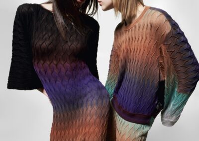 2023. Missoni collaborates with MATCHES and creates a capsule collection of 12 pieces, conceived as a genderless collection characterized by an exclusive Missoni zigzag interpreted in joyful colors used for the first time ever in men’s and women’s clothing.